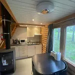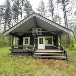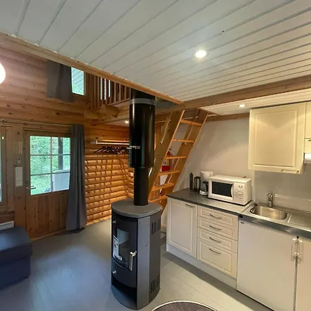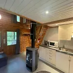 A Katajaharju Vila está equipada com kitchenette, juntamente com chaleira elétrica, refrigerador e artigos de vidro.